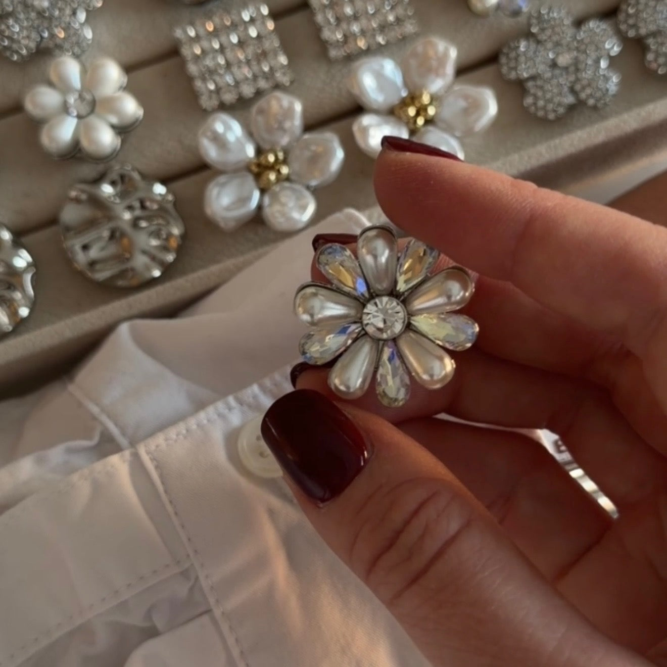 ✨Klicka✨ fast knappsmyckena direkt på knapparna på din skjorta eller blus.